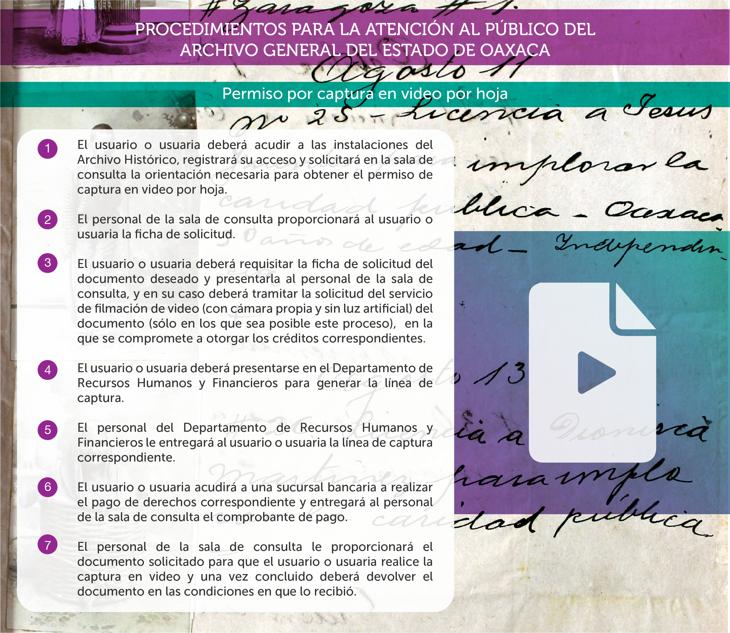 Pasos para el acceso al área de consulta del Archivo Histórico