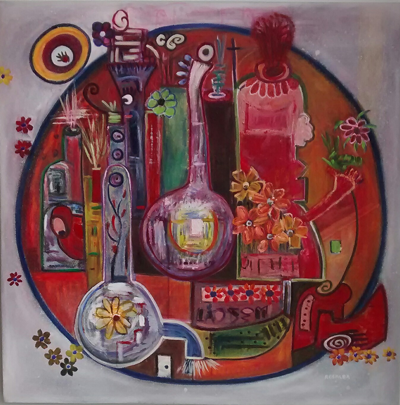 En esa búsqueda de formas Rosalba descubre ritmos sin tiempo ni espacio, enriqueciéndose inmensamente con el encuentro de colores y texturas que llegan a ser instintivas y básicas, dando un lugar para cada trazo, dentro de una profunda diversidad de un arte afrodisíaco, por la explosividad y expansividad de su contacto con la naturaleza. Así, en la mutación de lo cotidiano, convierte su arte en el encuentro con lo profundo, dando una rica y vasta significación a su eros apolíneo, con una estética y belleza diferentes, que transmiten a la mutación del yo angustiado, en un estatus de armonía y equilibrio constante.