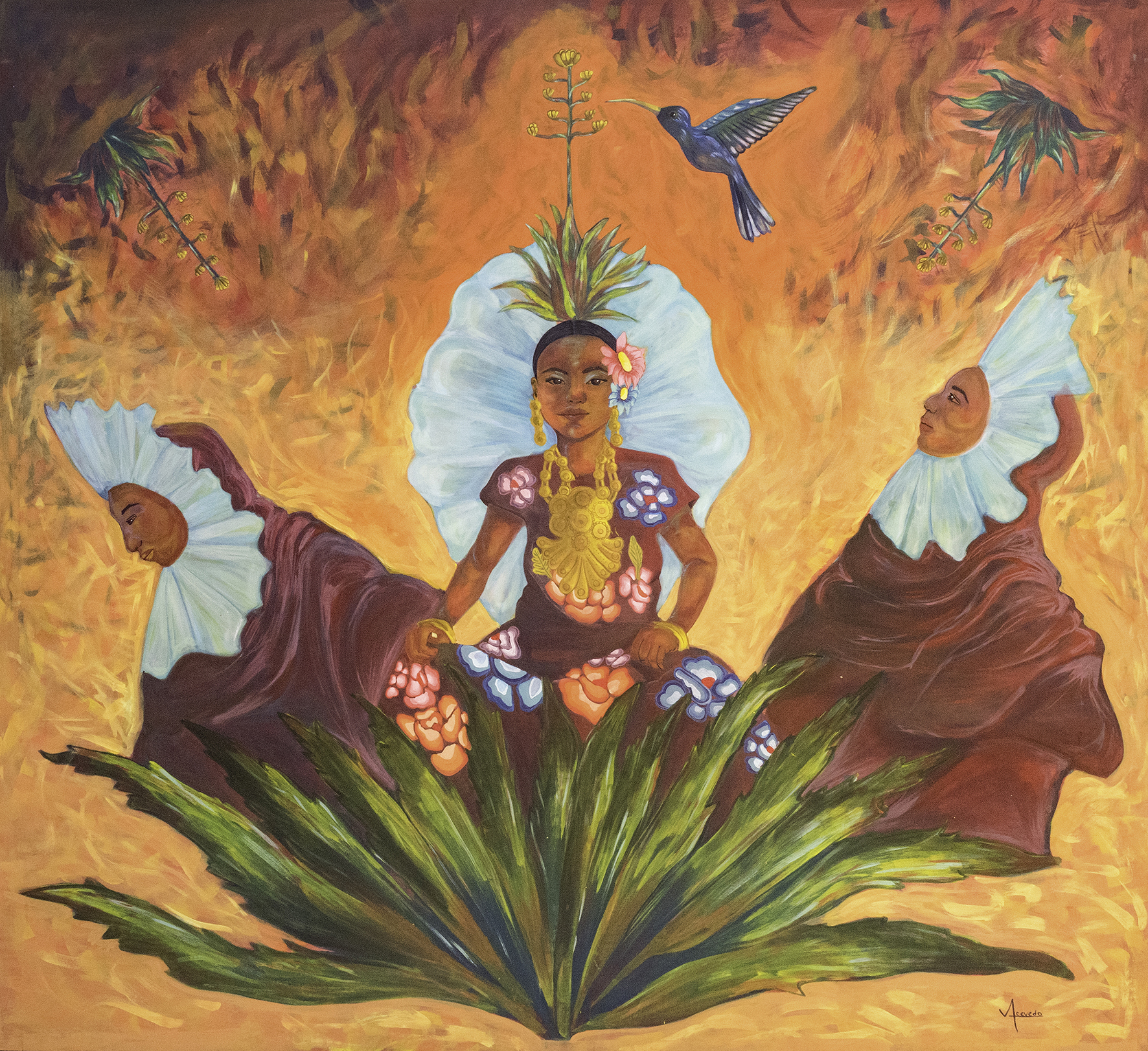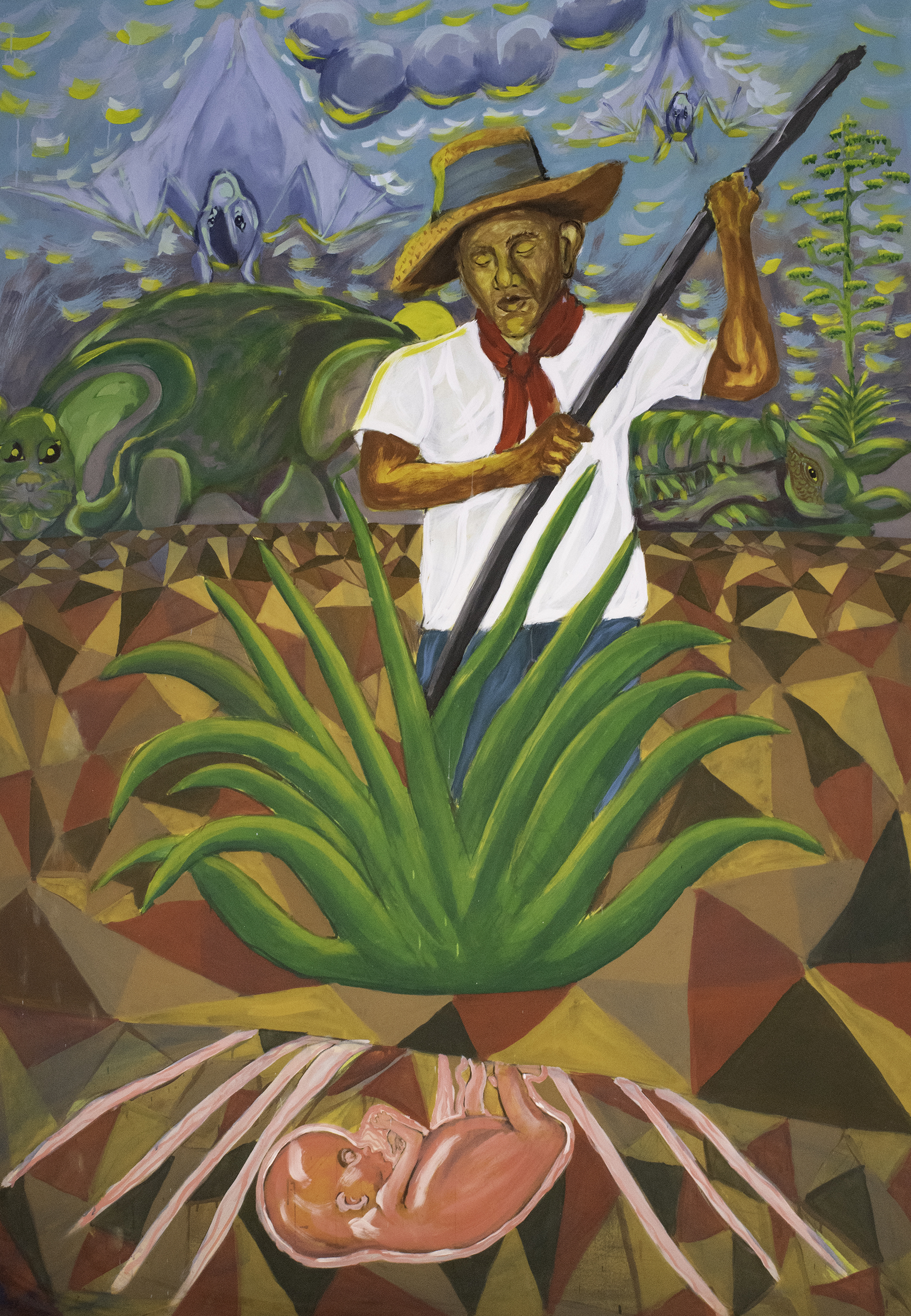Óscar Camilo de las Flores trabaja de forma individual al margen del gran mercado oaxaqueño y sigue produciendo arte muy personal, alguna de contenido social.