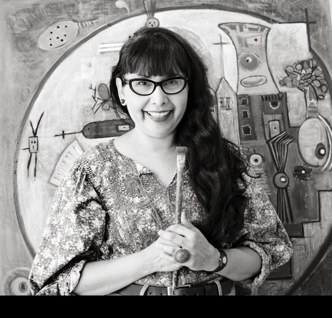 “Juego” con el color, manchas, trazos; lo que la pintura me señala a manera de diálogo. Le doy un lugar importante a mi propio lenguaje a través de trazos caprichosos que se tornan en formas geométricas. Siento una especial alegría utilizando la pintura al óleo para expresarme.