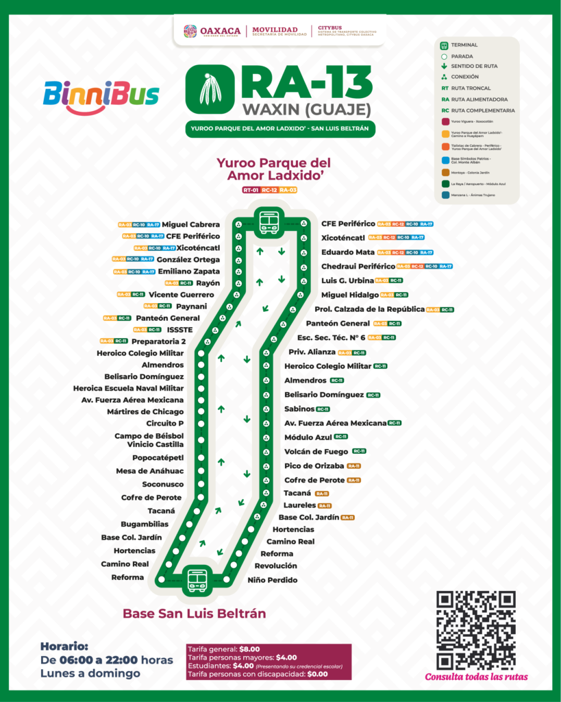 Con la puesta en operación de este trayecto, el BinniBus suma 21 rutas en calle, lo que garantiza un transporte digno, seguro, accesible e inclusivo, que responde a las necesidades de tránsito de las familias oaxaqueñas.