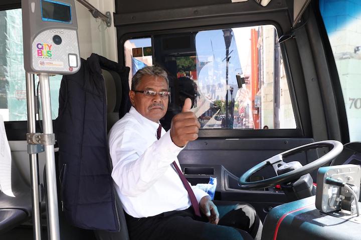 En compañía de la Presidenta Honoraria del Sistema para el Desarrollo Integral de la Familia (DIF) Oaxaca, Irma Bolaños Quijano y la representante de la Diosa Centéotl 2025, Patricia Casiano Zaragoza; el Mandatario estatal supervisó el funcionamiento de las 17 unidades que partirán desde 9 puntos, para brindar un servicio de transporte público gratuito, accesible e inclusivo a todas y todos los oaxaqueños y personas visitantes.