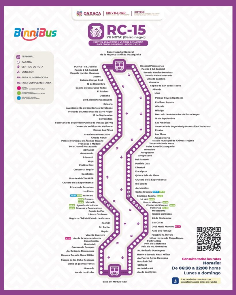 Ruta RC-15 Yu Ngta’: Hospital de la Mujer y la Niñez Oaxaqueña – Base Símbolos Patrios – Módulo Azul