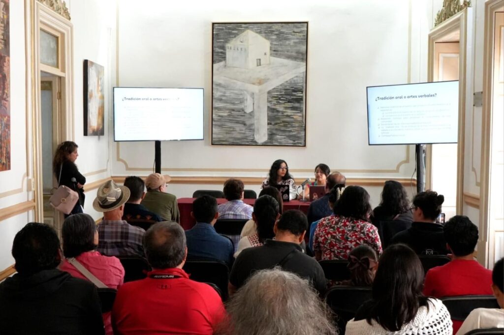 En la Casa Emma Godoy, Ana Alonso Ortiz, antropóloga, lingüista e investigadora zapoteca de la comunidad de Villa Hidalgo Yalálag, en la Sierra de Juárez, compartió con la audiencia parte de la cultura de su comunidad y la importancia de su legado tangible e intangible.