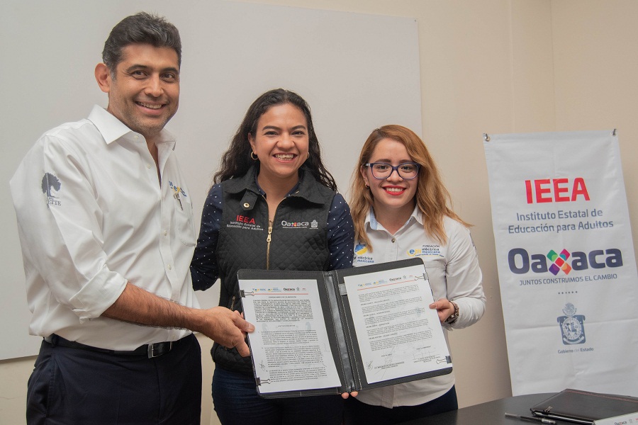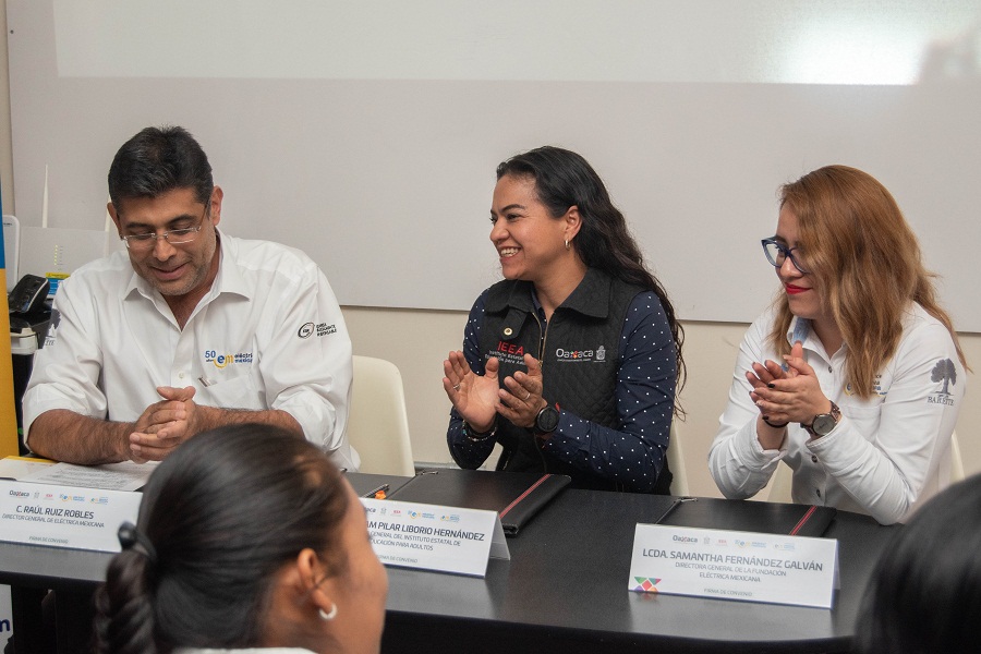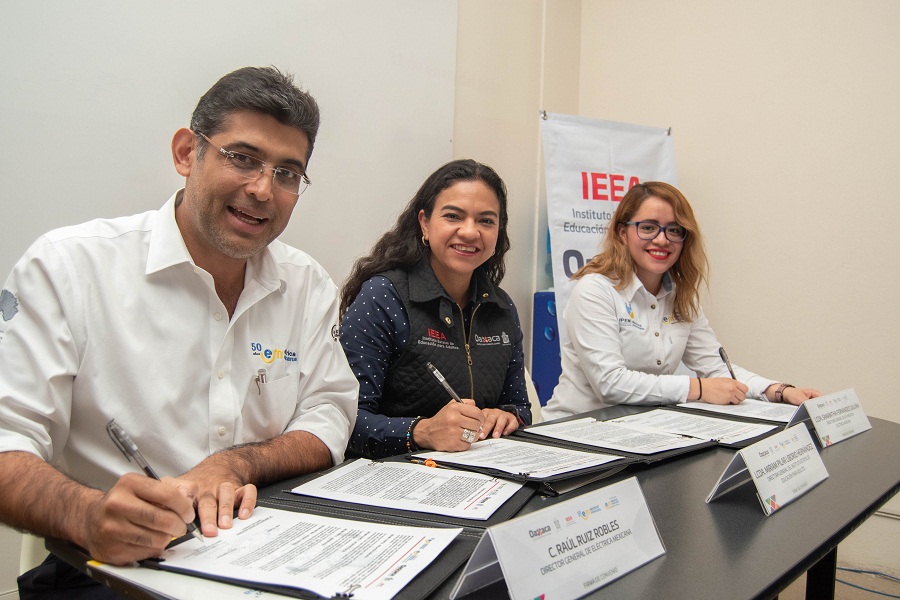 Oaxaca de Juárez, Oax. 31 de enero de 2020. Con la finalidad de realizar, de manera conjunta, acciones para abatir el analfabetismo y reducir el rezago educativo en Oaxaca, el Instituto Estatal de Educación para Adultos, (IEEA), firmó un convenio de colaboración con la empresa Eléctrica Mexicana y la Fundación Eléctrica Mexicana A.C.