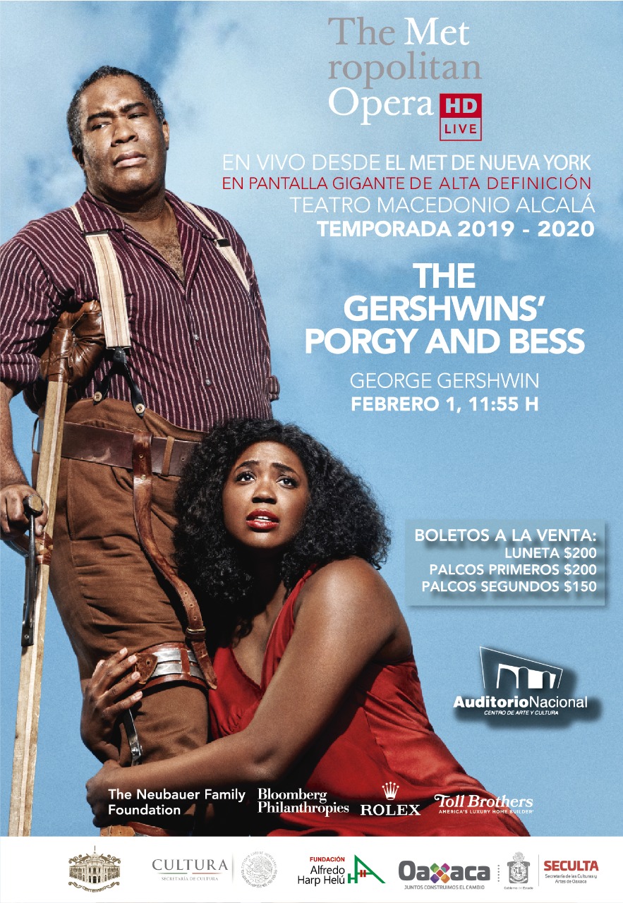 Oaxaca de Juárez, Oax. 31 de enero de 2020.- La Secretaría de las Culturas y Artes de Oaxaca (Seculta) invita a la ciudadanía oaxaqueña y visitantes a disfrutar de la función de ópera “The Gershwins´ Porgy and Bess” de George Gershwin, que se transmite en pantalla gigante de alta definición desde “The Metropolitan Opera” (MET); este sábado 1 de febrero a las 11:55 horas en el teatro Macedonio Alcalá.