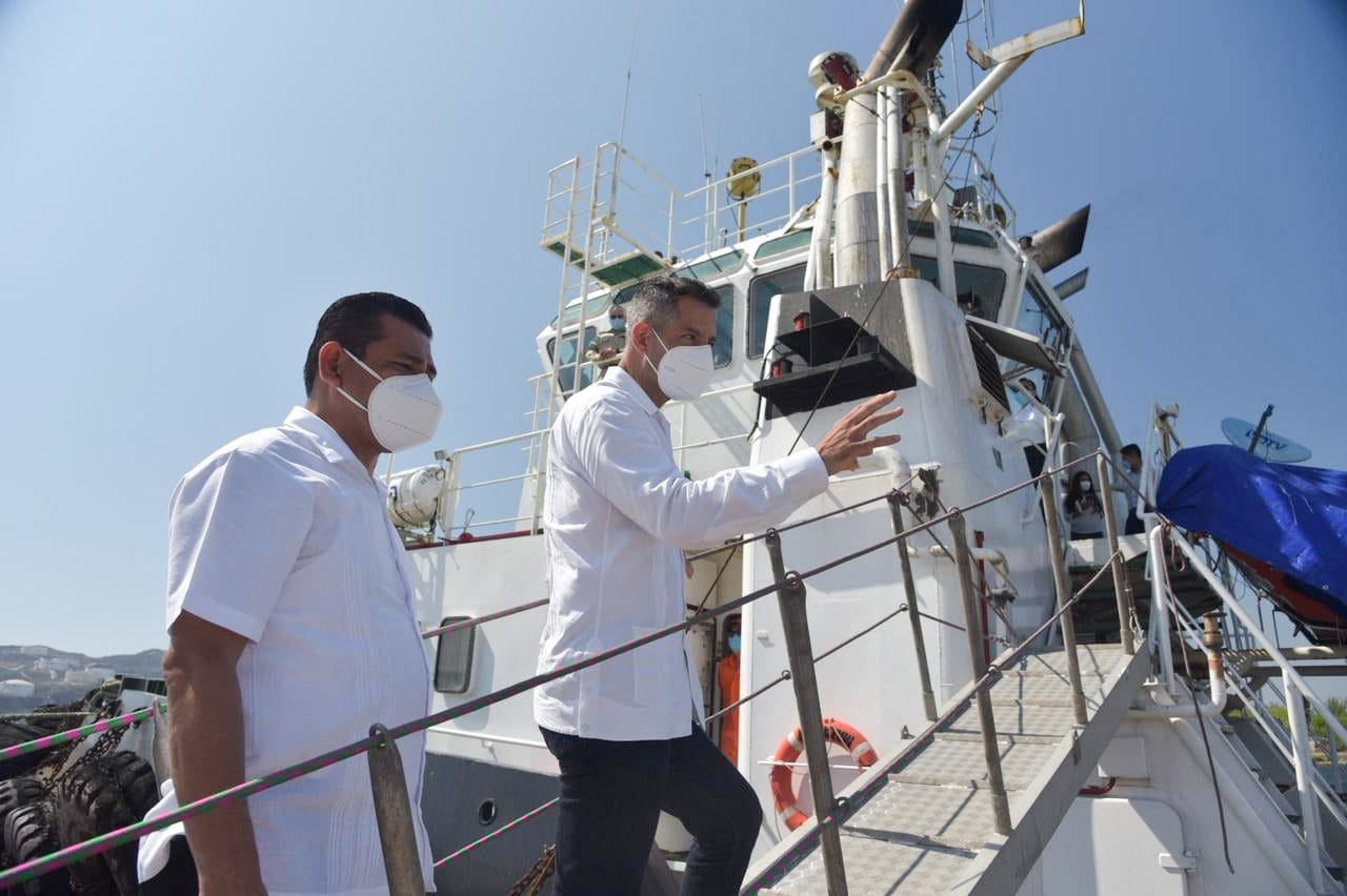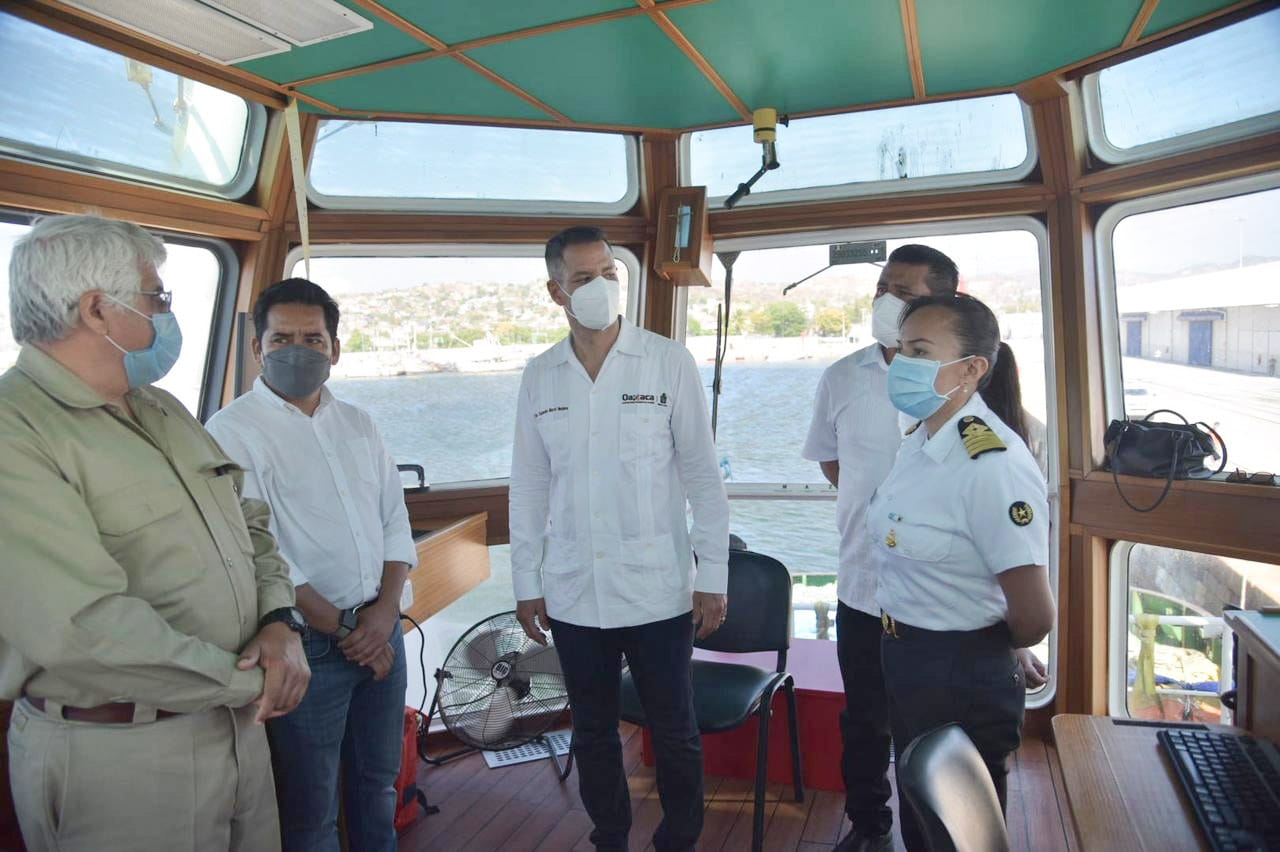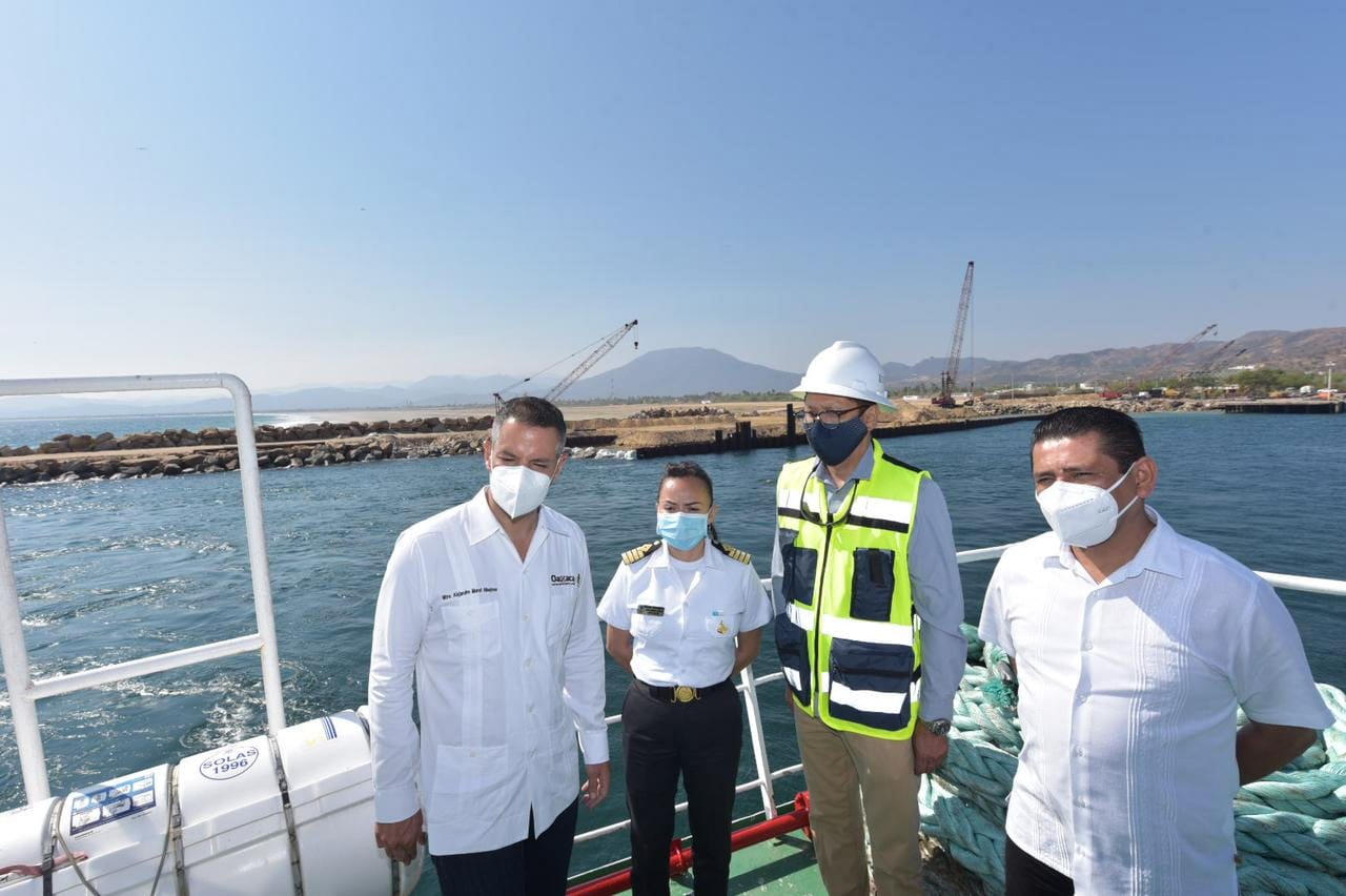 La gira de trabajo del gobernador Alejandro Murat por este municipio concluyó con un recorrido de supervisión por barco, para conocer los avances de la escollera rompeolas en el Puerto de Salina Cruz, que forma parte de la Plataforma Logística del Corredor Interoceánico, una de las obras de ingeniería marítima más compleja, la cual estará conformada en un 90% por piedra.