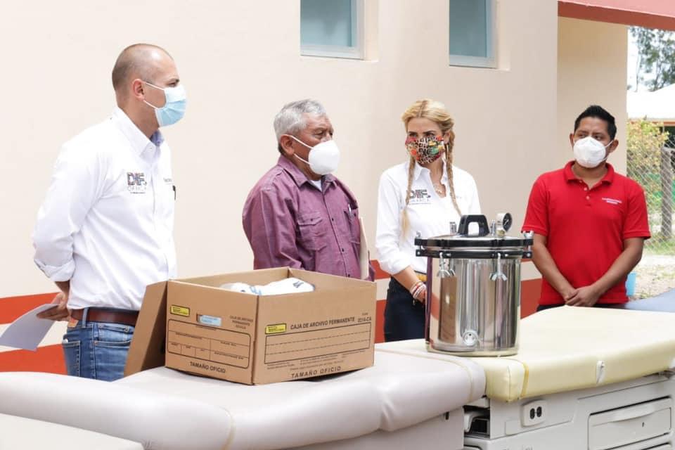“Estamos muy contentos de visitar este municipio, ya que era necesario un centro de salud, el cual está a punto de ser terminado, gracias a las gestiones y apoyo de mi esposo, el Gobernador Alejandro Murat. Por eso, el día de hoy, damos cumplimiento a su instrucción con la entrega de instrumentos y apoyos médicos”, enfatizó la presidenta honoraria del DIF Oaxaca.