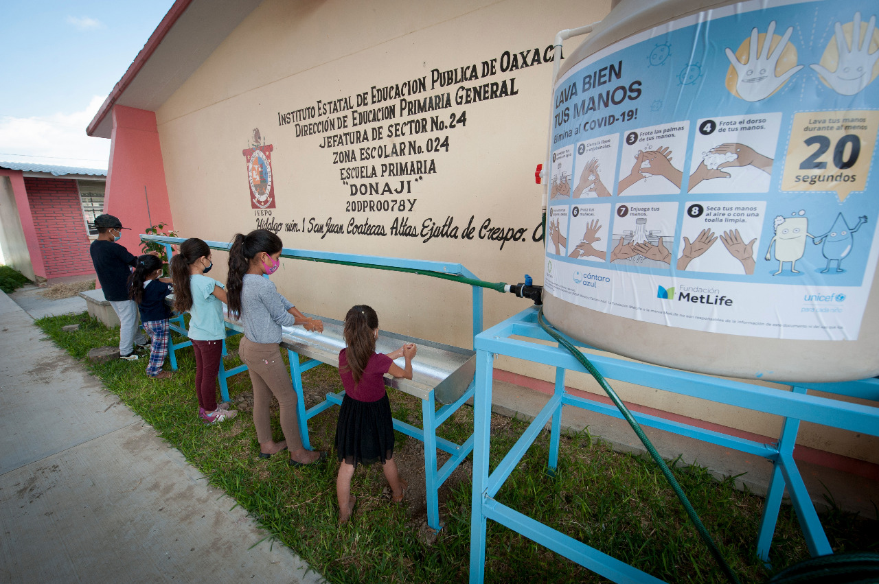 Instalan Unicef e IEEPO 100 estaciones de lavado de manos en 78 escuelas