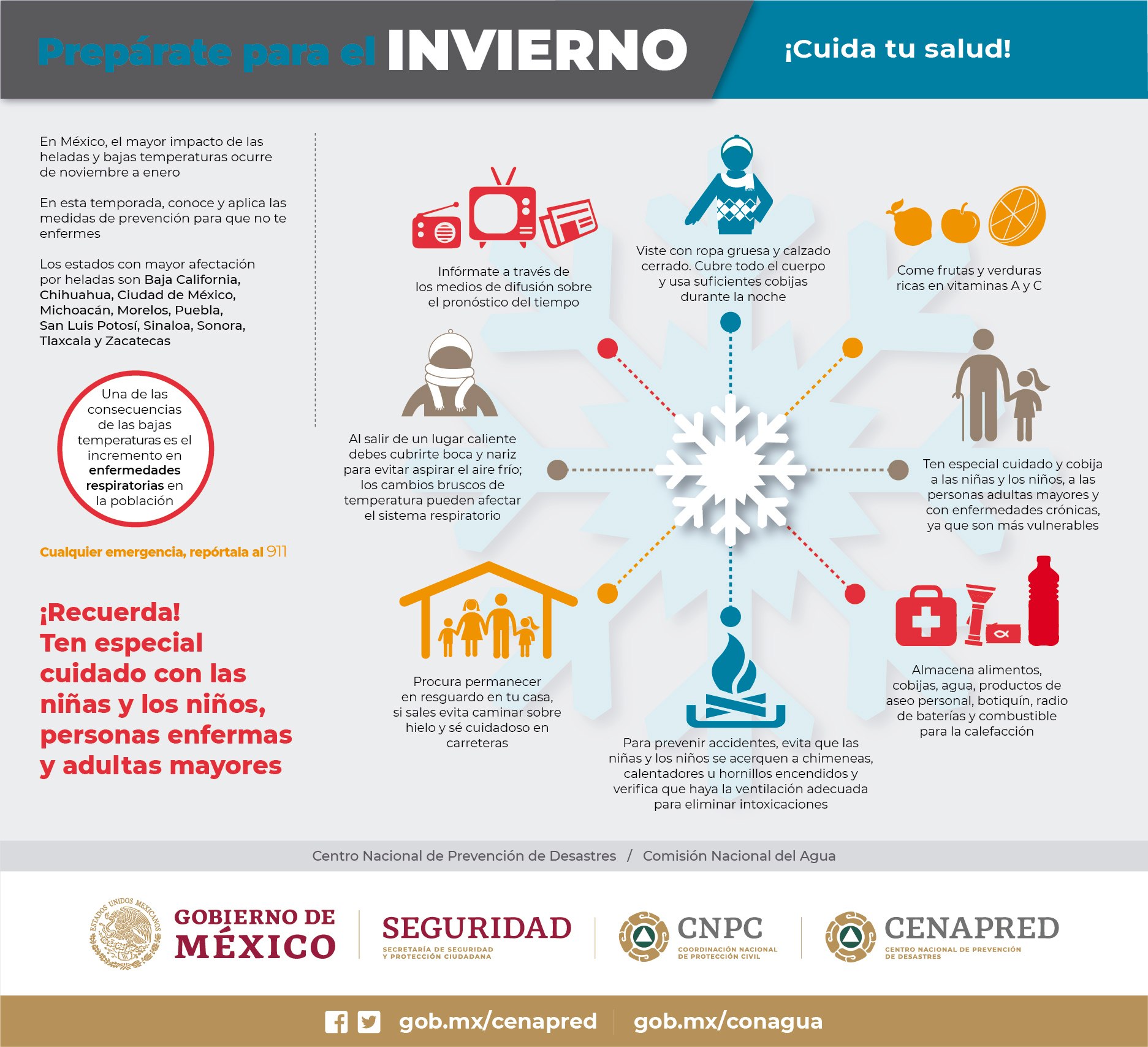 La Coordinación estatal de Protección Civil que encabeza Oscar Valencia García emite las siguientes recomendaciones por temporada invernal: