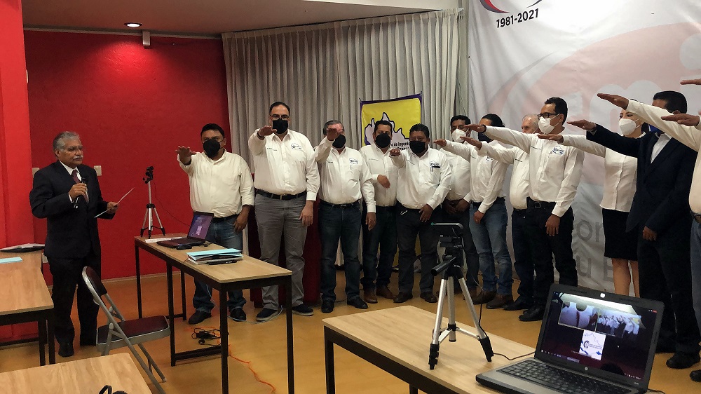 Oaxaca de Juárez, Oax. 3 de febrero de 2022.- En representación del titular de la Secretaría de las Infraestructuras y el Ordenamiento Territorial Sustentable (Sinfra), Javier Lazcano Vargas, el subsecretario de Obras, Leopoldo Gilberto López López, tomó la protesta a los integrantes del XVII Consejo Directivo del Colegio de Ingenieros Civiles de Oaxaca (CICO), que encabeza Carlos Alberto Barahona Torres para el periodo 2022-2023.
