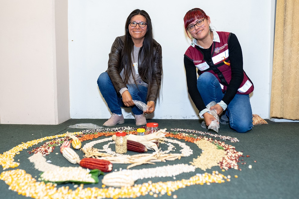 En esta capacitación las personas asistentes mostraron semillas y mazorcas de sus comunidades para realizar un altar y agradecer a la tierra.