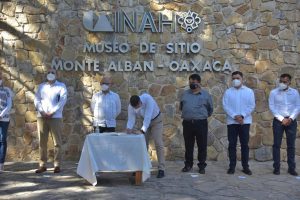 El Gobernador y el titular del INAH, firmaron el libro de personalidades distinguidas de Monte Albán. Asimismo, personal sindicalizado de este espacio entregaron un reconocimiento a ambos funcionarios. Posteriormente, en la taquilla del lugar, obtuvieron su boleto para el ingreso a esta zona arqueológica