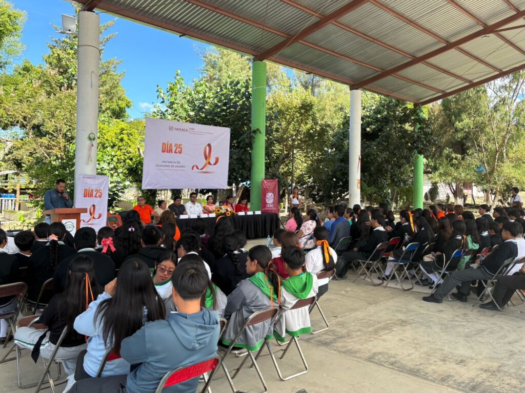 Oaxaca de Juárez, Oax. 25 de noviembre de 2025.- El Instituto de Estudios de Bachillerato del Estado de Oaxaca (IEBO) realizó una jornada de actividades de sensibilización, dirigida a la comunidad estudiantil del plantel 119 San Juan Teitipac, para prevenir agresiones hacia niñas, adolescentes y mujeres.