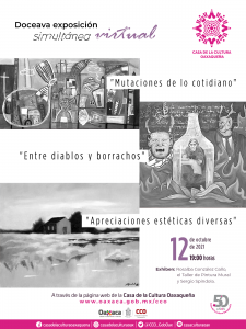 - Las exposiciones “Mutaciones de lo cotidiano”, “Apreciaciones estéticas diversas” y “Entre diablos y borrachos” podrán disfrutarse en el portal web de la Casa de la Cultura Oaxaqueña