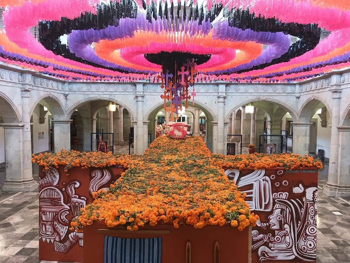 Esta obra, realizada por diversos artistas, fue recorrida por el Gobernador Salomón Jara Cruz y la Presidenta Honoraria del Sistema DIF Oaxaca, Irma Bolaños Quijano; la cual puede ser visitada por el público en general durante esta temporada de Día de Muertos.