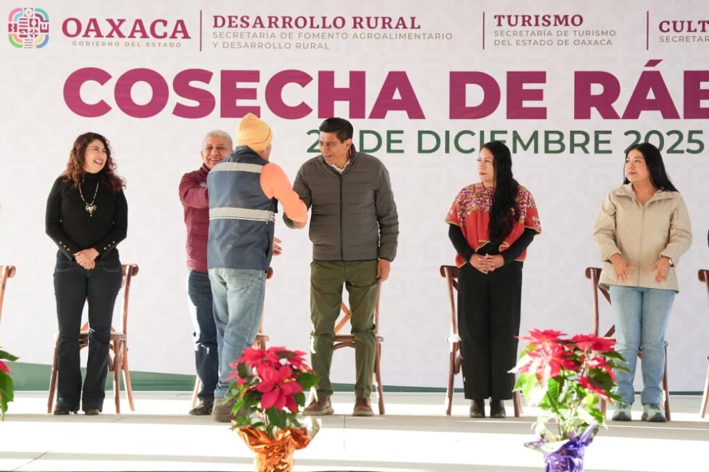 Jara Cruz recordó que esta actividad se remonta al siglo XIX, cuando el ingenio de las y los comerciantes transformó un producto de campo en expresión cultural, dando origen a la Noche de Rábanos, que ahora, no sería posible sin el esfuerzo institucional previo: preparación de la tierra, siembra escalonada y cuidado del cultivo.