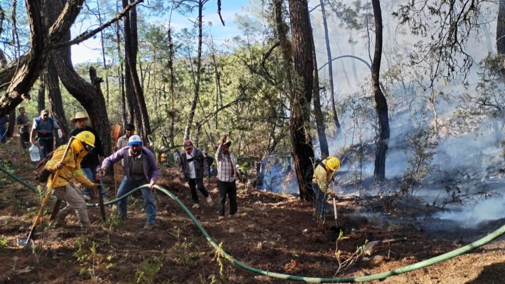 De igual manera, en la Sierra de Flores Magón, personal combatiente de incendios forestales de la Coesfo con sede en San Juan Bautista Cuicatlán atiende en Mazatlán Villa de Flores un siniestro en el paraje Loma de Agua.