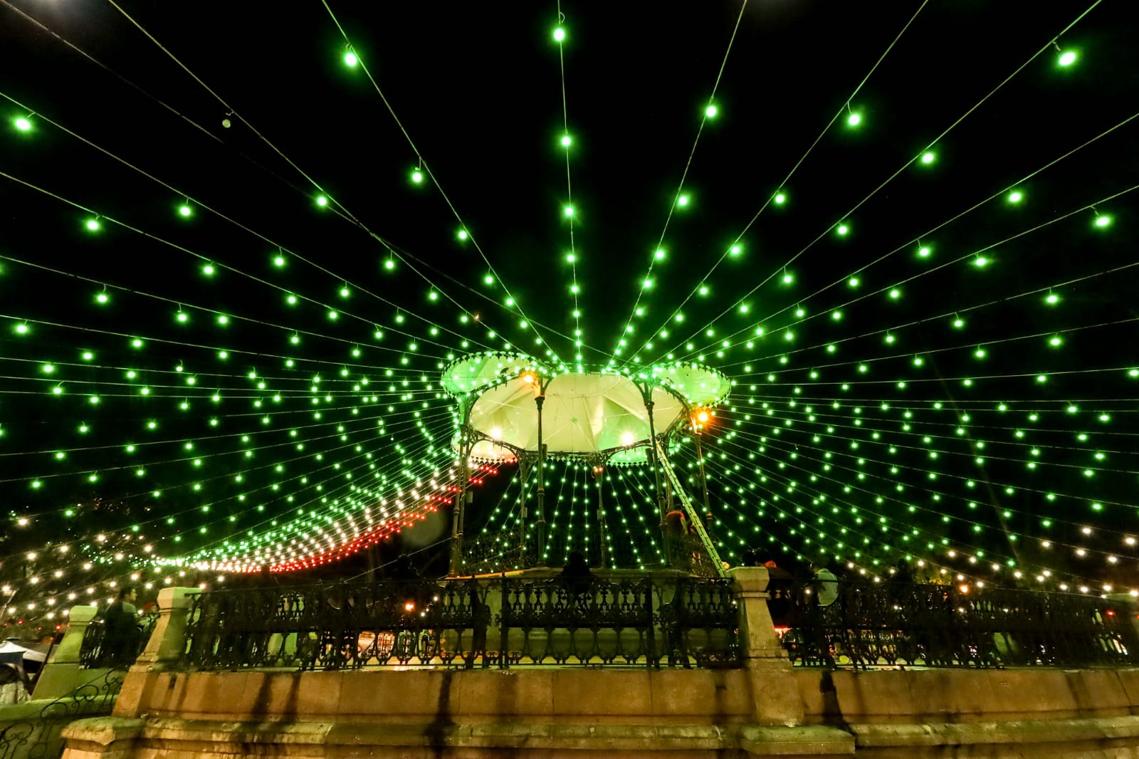 Administración ilumina con luces tricolor el zócalo y andador durante el mes patrio