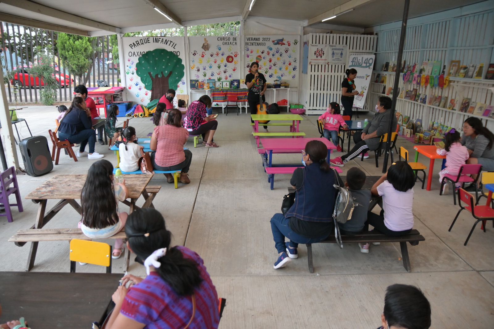Tlalixtac de Cabrera, Oax., 25 de noviembre de 2022.- El Parque Recreativo Oaxaca Bicentenario, espacio bajo resguardo de la Secretaría de Administración, fue sede de la Feria Internacional del Libro Infantil y Juvenil “FILIJ 40 en todas partes”, actividad realizada en colaboración con el Colectivo Talimú.