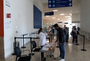 Destacó que como parte de esta medida, todos los pasajeros de salida, tanto nacionales como internacionales, antes de pasar por el punto de inspección, tiene que entregar un cuestionario de factores de riesgo, en el cual deben declarar si tienen algún síntoma relacionado con el COVID-19, y también los países o ciudades que visitaron en los últimos 14 días.