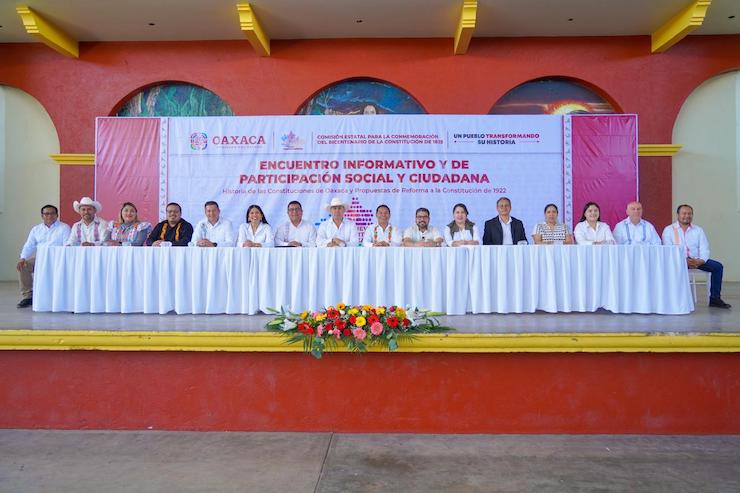 “El Gobernador del Estado, Salomón Jara Cruz, nos dio la encomienda de recorrer todas las regiones, para arropar una Nueva Constitución en la Cuarta Transformación”, dijo, en el tercer Encuentro Regional Informativo y de Participación Social y Ciudadana: Historia de las Constituciones de Oaxaca y Propuestas de Reforma a la Constitución de 1922.