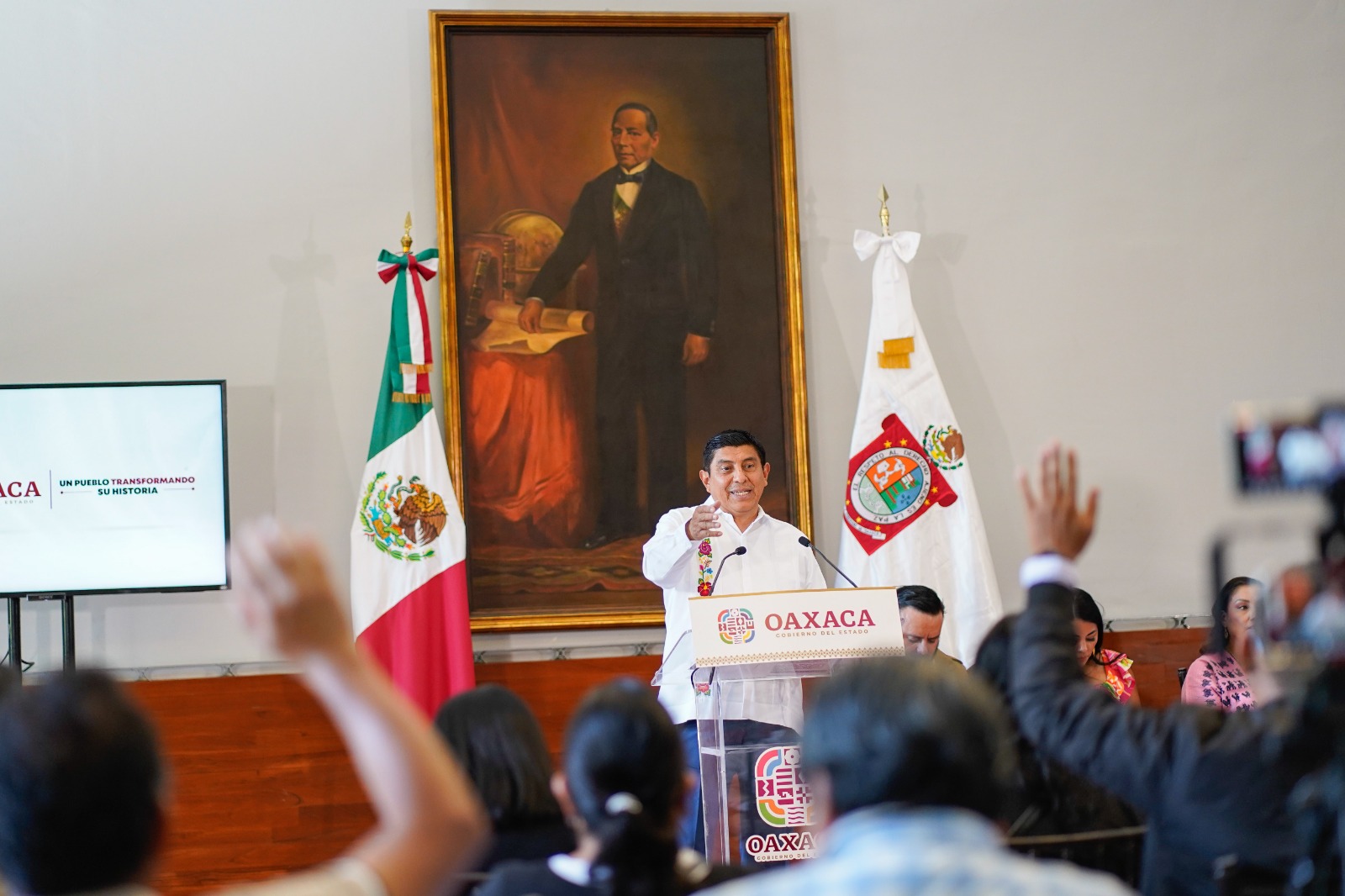 El Gobernador Salomón Jara Cruz también anunció que ha girado instrucciones para revisar la situación jurídica y promover el retorno seguro del profesor Raúl Gatica Bautista, indígena mixteco originario de la Heroica Ciudad de Tlaxiaco, exiliado desde el 2005 en Vancouver, Canadá, luego de ser víctima de persecución política durante administraciones pasadas.