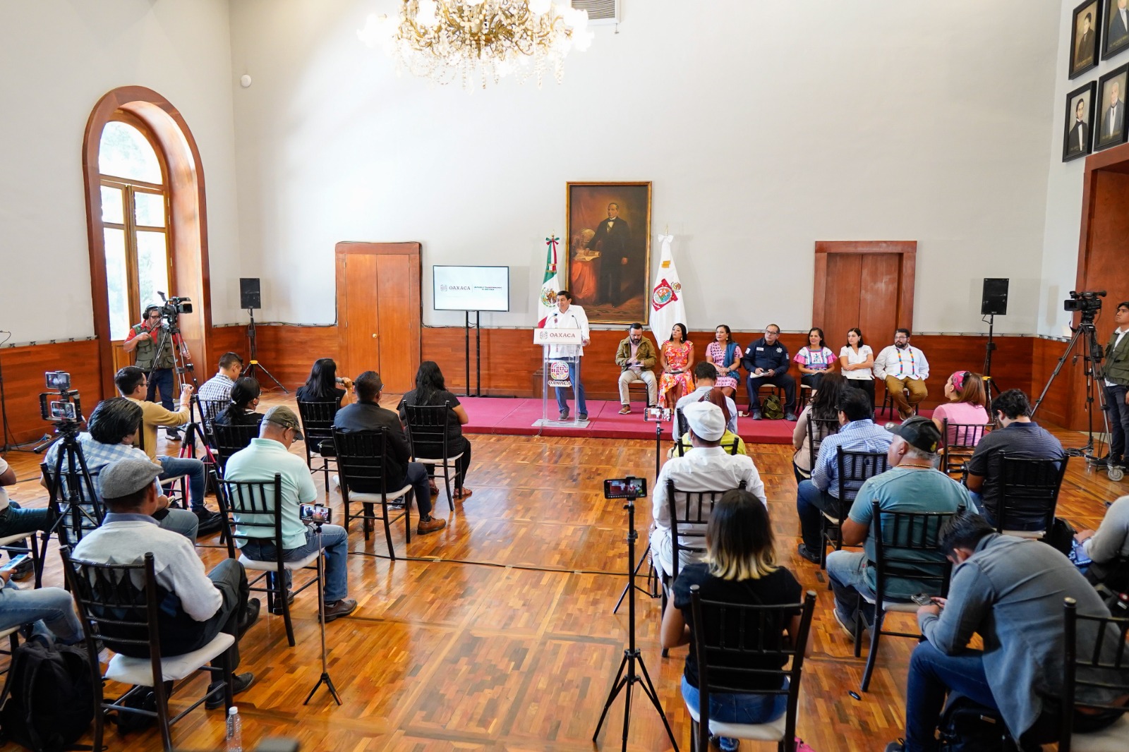 Expresó que Oaxaca continúa con tendencia a la baja en la mayoría de los delitos de alto impacto en todas las regiones del estado. Añadió que, con algunas excepciones y casos aislados, el ambiente generalizado ha sido de paz y tranquilidad en comunidades y centros turísticos.