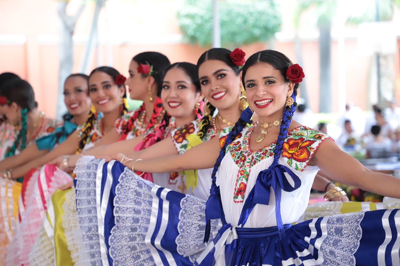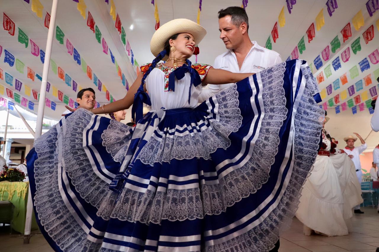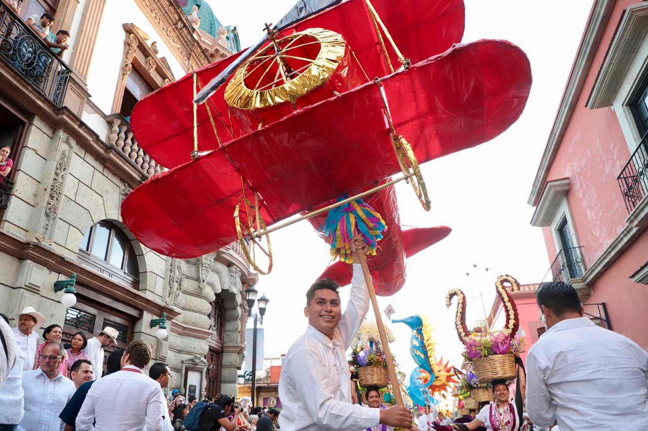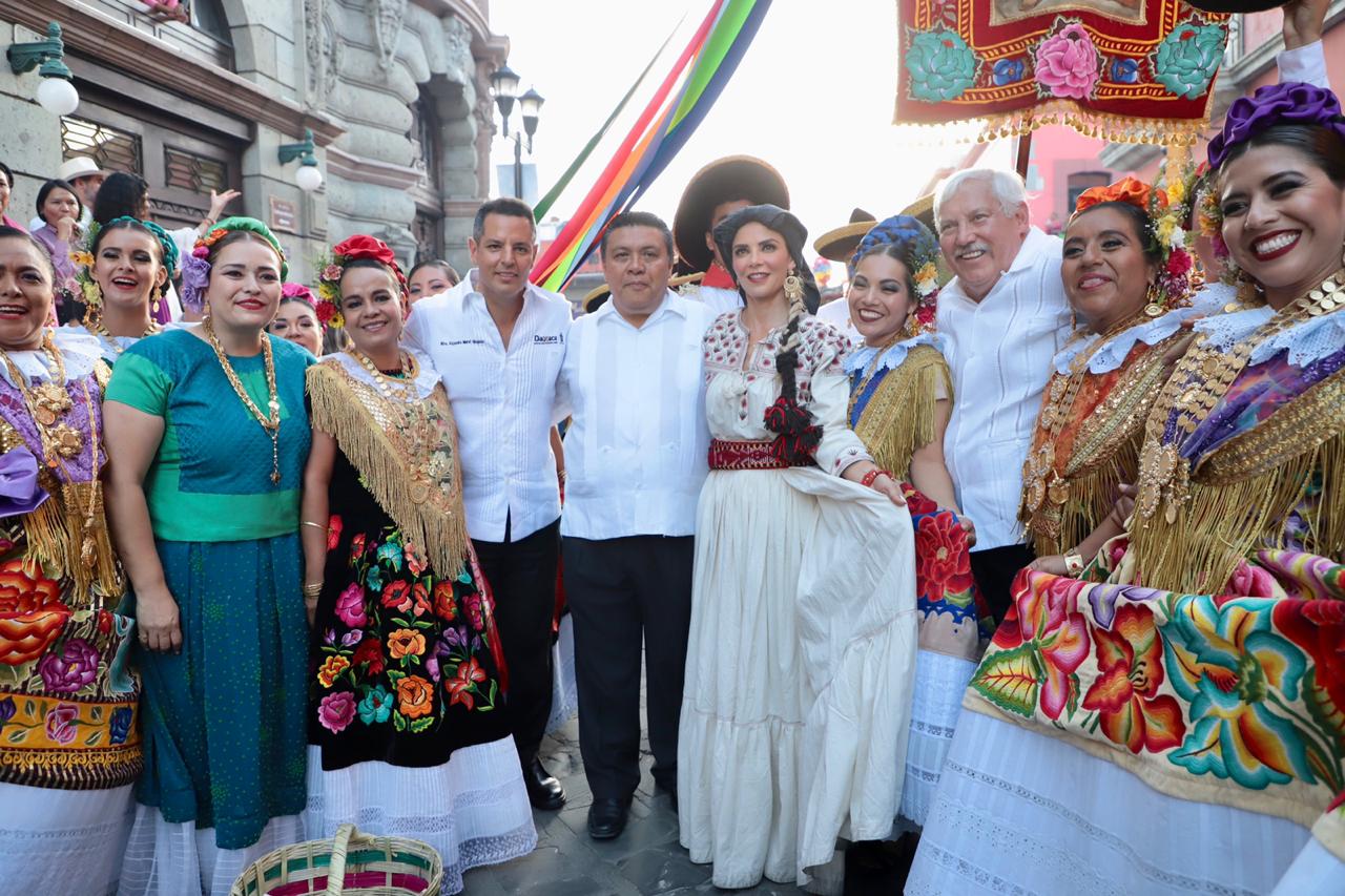 Con canastas adornadas con flores reposando sobre sus cabezas, las Chinas Oaxaqueñas –ataviadas con faldas de gran vuelo, blusa blanca y rebozo- fueron las primeras en dar color a esta fiesta, y junto con los monos de calenda, los maramoteros y los faroleros que las acompañan, invitaron a bailar el tradicional Jarabe del Valle.