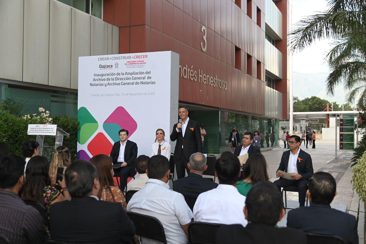 En su intervención el Consejero Jurídico del Gobierno del Estado, José Octavio Tinajero Zenit, señaló que es un día transcendente para la sociedad oaxaqueña al tener un espacio en donde se concentrarán los actos más relevantes que tienen en su vida, las compra ventas de sus casas, las sociedades que integran, testamentos y demás documentos que dan certeza jurídica.