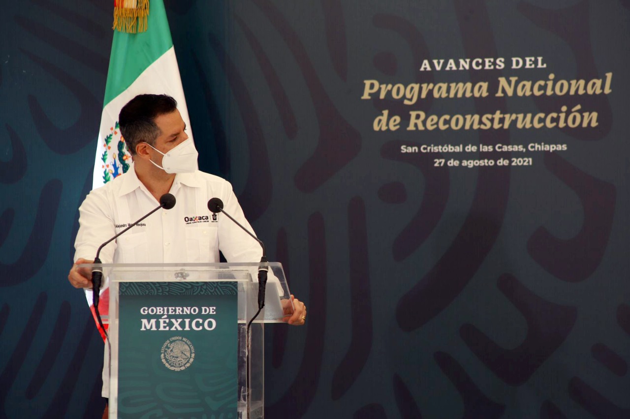 El Gobernador Alejandro Murat Hinojosa expresó que el Programa Nacional de Reconstrucción es resultado de una política pública congruente con una filosofía de gobierno que se centra en “primero los pobres”; y que no sólo se trata de poner de pie lo que se cayó, si no que representa una inversión de miles de millones de pesos para que las mexicanas y los mexicanos de los estados afectados puedan ver cumplidos sus derechos humanos a la salud, a la educación, a la vivienda digna y a la cultura.