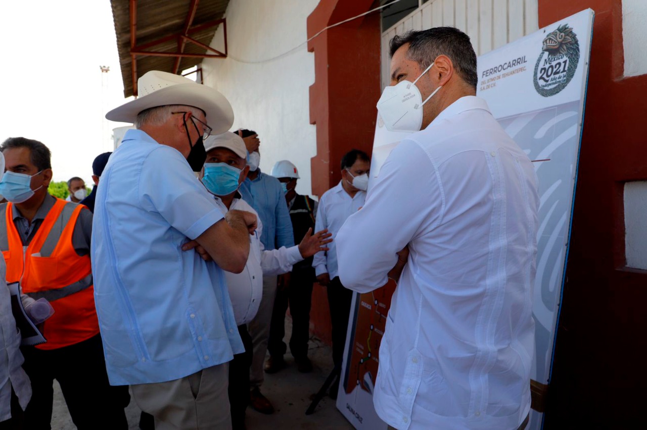 Salina Cruz, Oax. 19 de octubre de 2021. Junto al Embajador de los Estados Unidos de Norteamérica en México, Excmo. Sr. Kenneth Lee Salazar, el gobernador Alejandro Murat Hinojosa realizó una gira de trabajo en esta localidad para supervisar los avances del Corredor Interoceánico del Istmo de Tehuantepec y presentar las acciones que se llevan a cabo para lograr que este proyecto, llamado a convertirse en el centro logístico más importante de América, se convierta en el principal motor del desarrollo del sureste del país en beneficio de miles de familias oaxaqueñas.