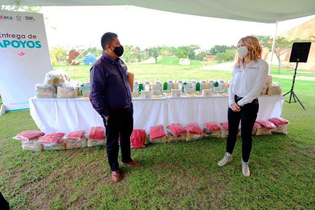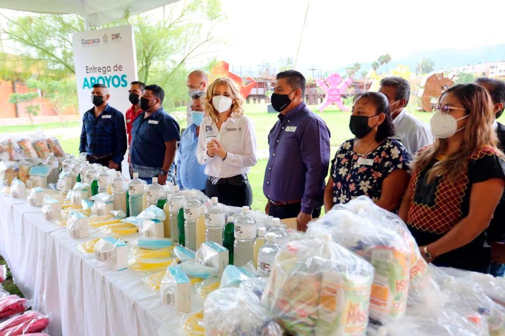 Para apoyar a las y los encargados de la limpieza de la ciudad de Oaxaca, la presidenta honoraria del Sistema para el Desarrollo Integral de la Familia (DIF) Oaxaca, Ivette Morán de Murat, entregó suministros de primera necesidad ante la pandemia de COVID-19.