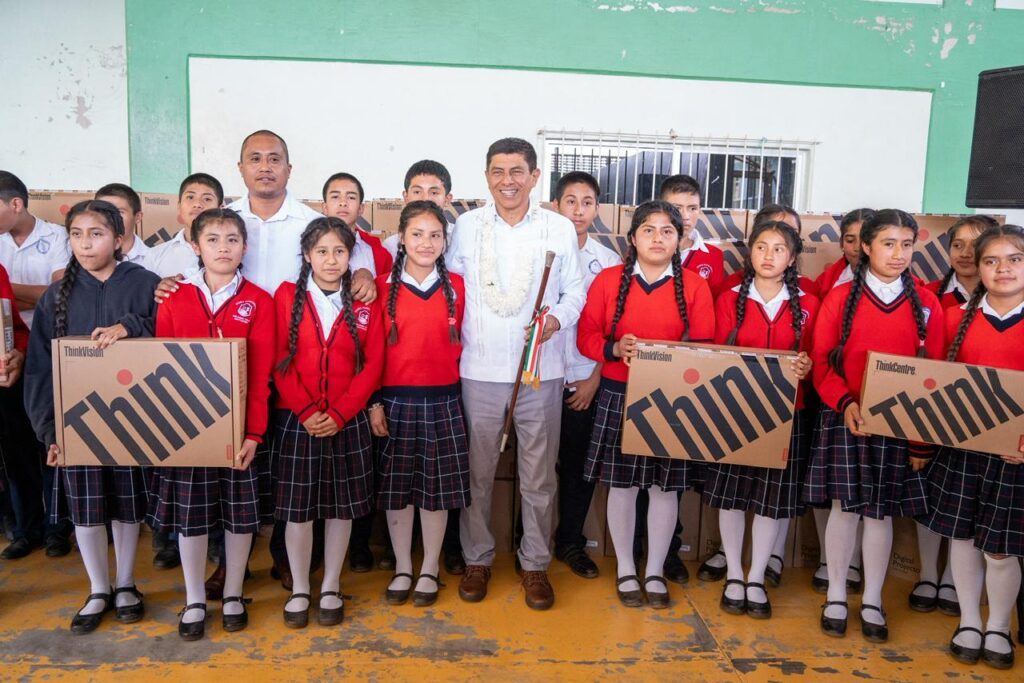 En esta comunidad se entregaron 18 computadoras y nueve proyectores para los planteles de educación básica por un millón 186 mil pesos. El Sistema DIF Oaxaca otorgó 706 mil pesos, a través de Desayuno de Letritas, Itacate de Corazón y Latido Nutritivo.