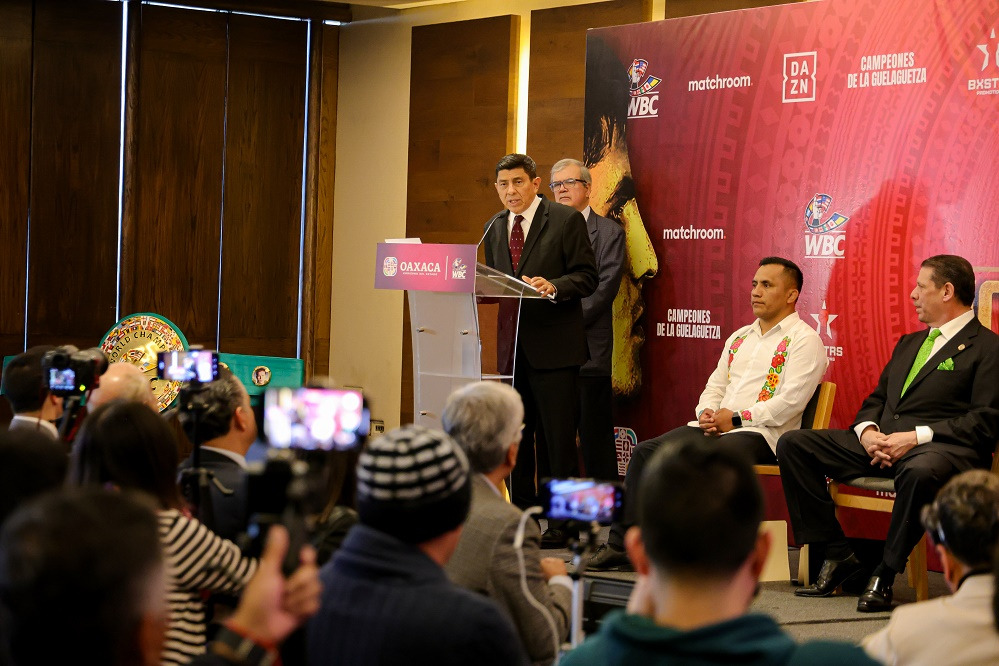 Durante una conferencia de prensa en la capital del país, el Gobernador de Oaxaca Salomón Jara Cruz, junto al vicepresidente del Consejo Mundial del Boxeo Héctor Sulaimán, destacó que en estos nuevos tiempos que vive la entidad, en donde existe paz y gobernabilidad, se llevará a cabo este encuentro de pugilismo de proyección internacional.