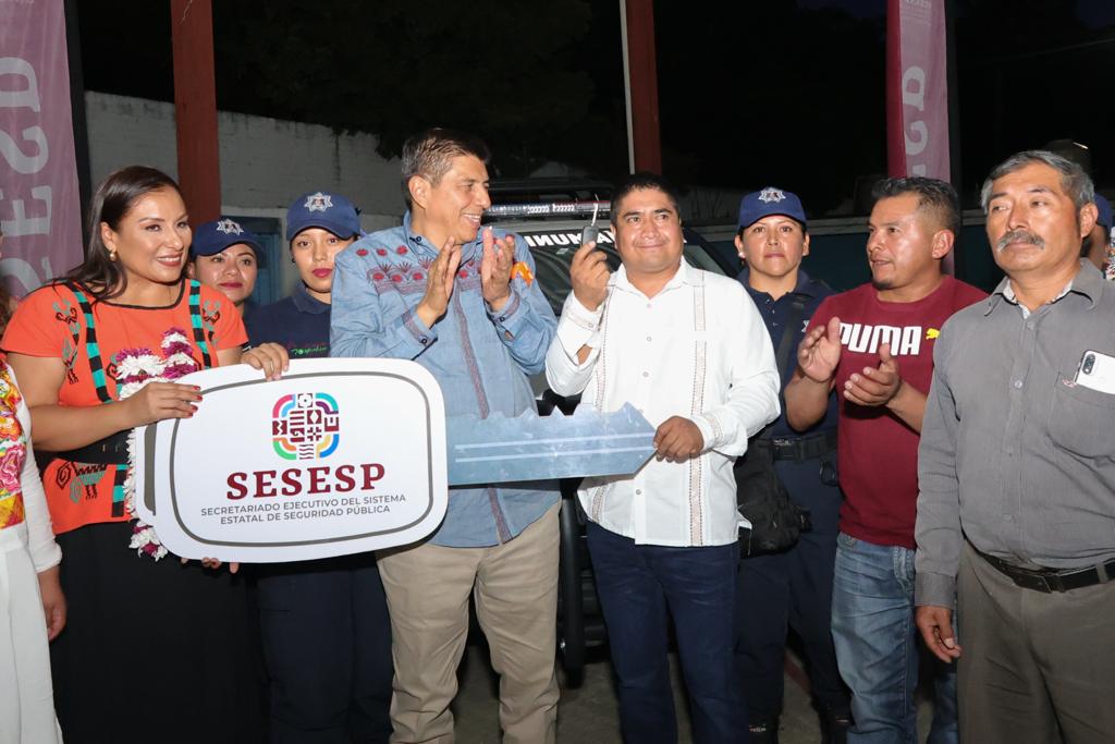 Para fortalecer la seguridad municipal, el Secretariado Ejecutivo del Sistema Estatal de Seguridad Pública (SESESP), entregó una patrulla doble cabina con batea equipada y balizada. Posteriormente, la dependencia apoyará con estímulos fiscales para la certificación de las y los elementos de la comunidad, para lo cual destinó 831 mil 650 pesos.