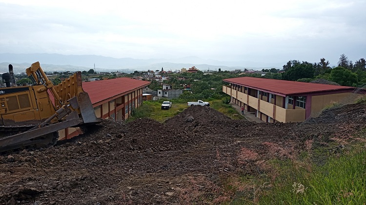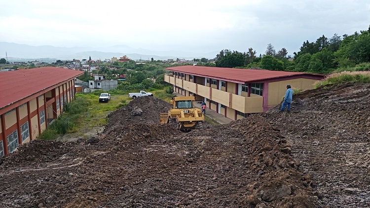 Los trabajos se realizaron para mejorar las condiciones de seguridad de los escolares, así como para evitar posibles deslaves o desgajamientos, por lo que se movilizaron mil 400 metros cúbicos de revestimiento, producto del desgaste del cerro ubicado detrás del plantel al que acuden en temporadas normales 720 alumnas y alumnos.