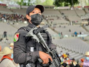 Oaxaca de Juárez, Oax. 25 de julio de 2022.-Con un despliegue operativo de más de 2 mil elementos de seguridad, distribuidos en los principales puntos de la capital oaxaqueña, la Secretaría de Seguridad Pública de Oaxaca (SSPO) salvaguarda la integridad de las y los asistentes en la celebración de la máxima fiesta de los oaxaqueños, la Guelaguetza 2022.
