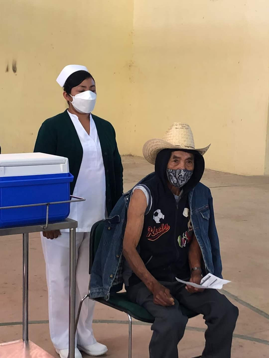 Con 75 años de edad, Modesto Jiménez oriundo de esta población, se convirtió en la primera persona en recibir por tercera ocasión el inmunológico, con ello se avanza en la lucha contra la pandemia, señaló la dependencia.