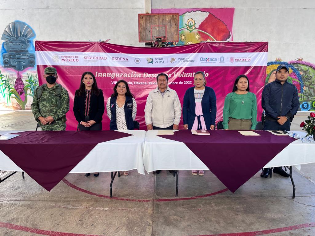 Este programa denominado «Desarme Voluntario» dispone de un módulo  que estará instalado los días 22 y 23 de septiembre en el corredor del Ayuntamiento de la Villa de Etla en un horario de las 10 de la mañana a 6 de la tarde.