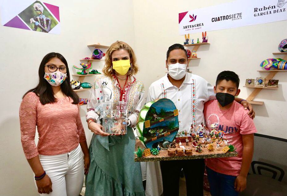 La señora Ivette Morán de Murat, presidenta honoraria del Sistema DIF Oaxaca, visitó el taller del maestro artesano Rubén García, de Arte y Crea Oaxaca. En esta visita, la esposa del Mandatario Estatal constató las increíbles miniaturas en papel, un trabajo que, sin duda, es impresionante.