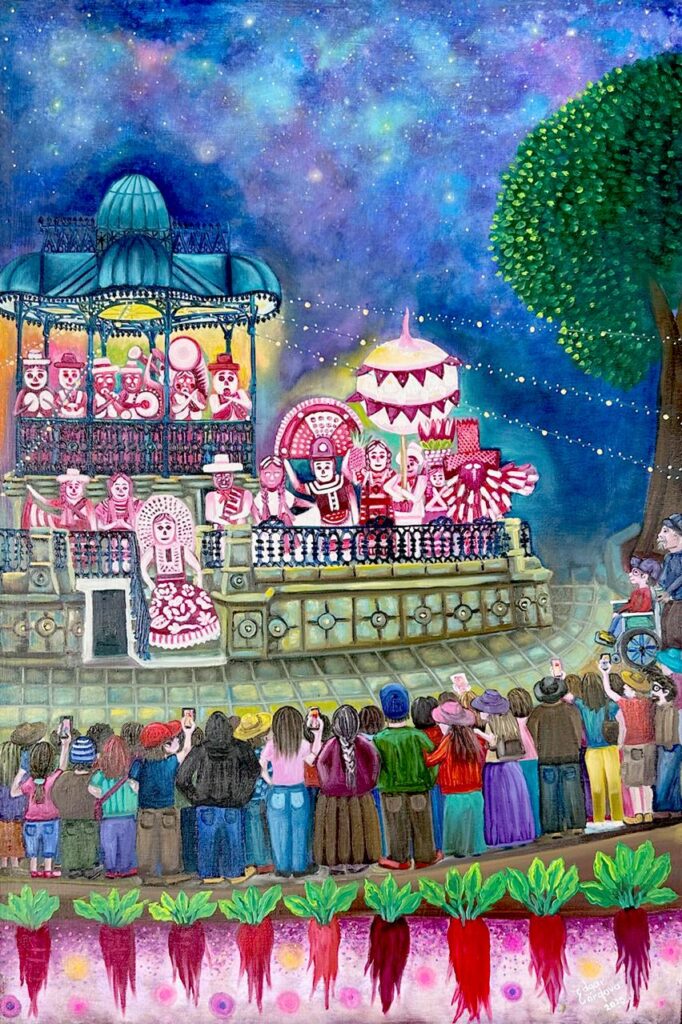 Oaxaca de Juárez, Oax. 8 de diciembre de 2025.- Una Persona Privada de la Libertad (PPL) del Centro Penitenciario Etla destacada por sus dotes en las artes plásticas, es autora de la obra que representará la imagen oficial de la Noche de Rábanos 2025; una celebración anual única en Oaxaca, que tiene lugar el 23 de diciembre.