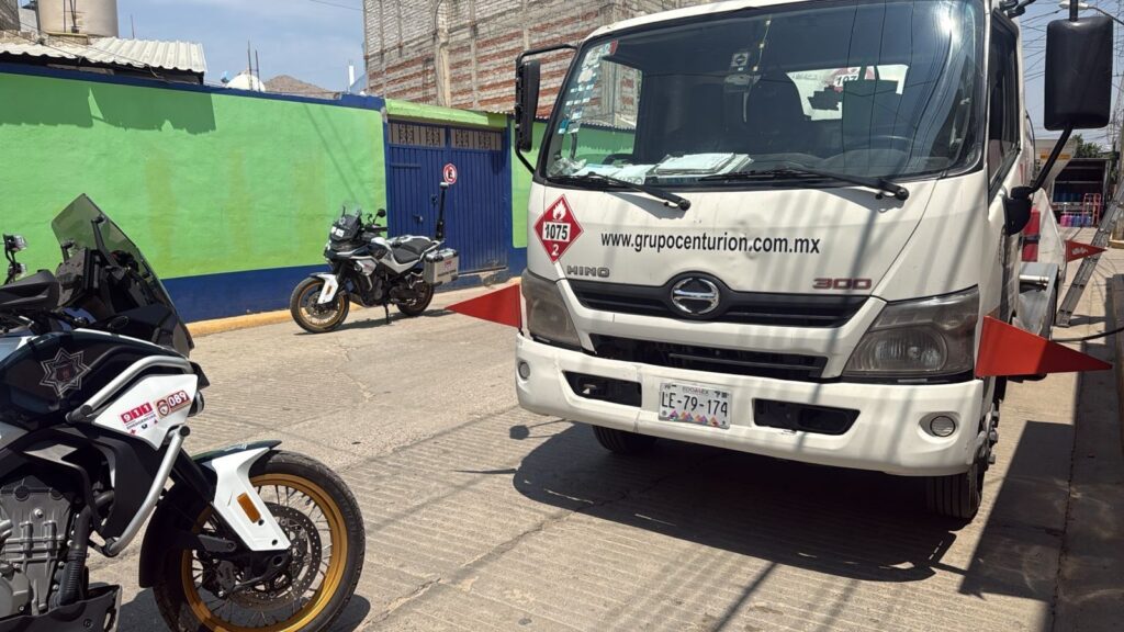 Oaxaca de Juárez, Oax., 22 de abril de 2026.- La Policía Vial Estatal aseguró una pipa abastecida con gas LP que circulaba sin la documentación correspondiente que acreditara la legalidad de su traslado y comercialización, sobre la calle Felipe Carrillo Puerto, a la altura del mercado de la colonia Reforma Agraria, en Santa Cruz Xoxocotlán.