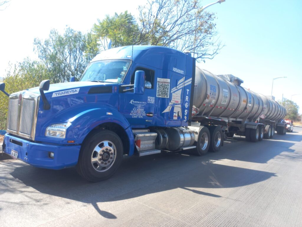 En primera instancia, se ubicó un tractocamión de dos remolques marca Kenworth, tipo tanque, color azul, del Servicio Público Federal, con placas 68AW7X (cabina), 20TX9L (primer remolque) y 18TX1M (segundo remolque), que transportaba hidrocarburo tipo diésel del cual se desconoce su procedencia.