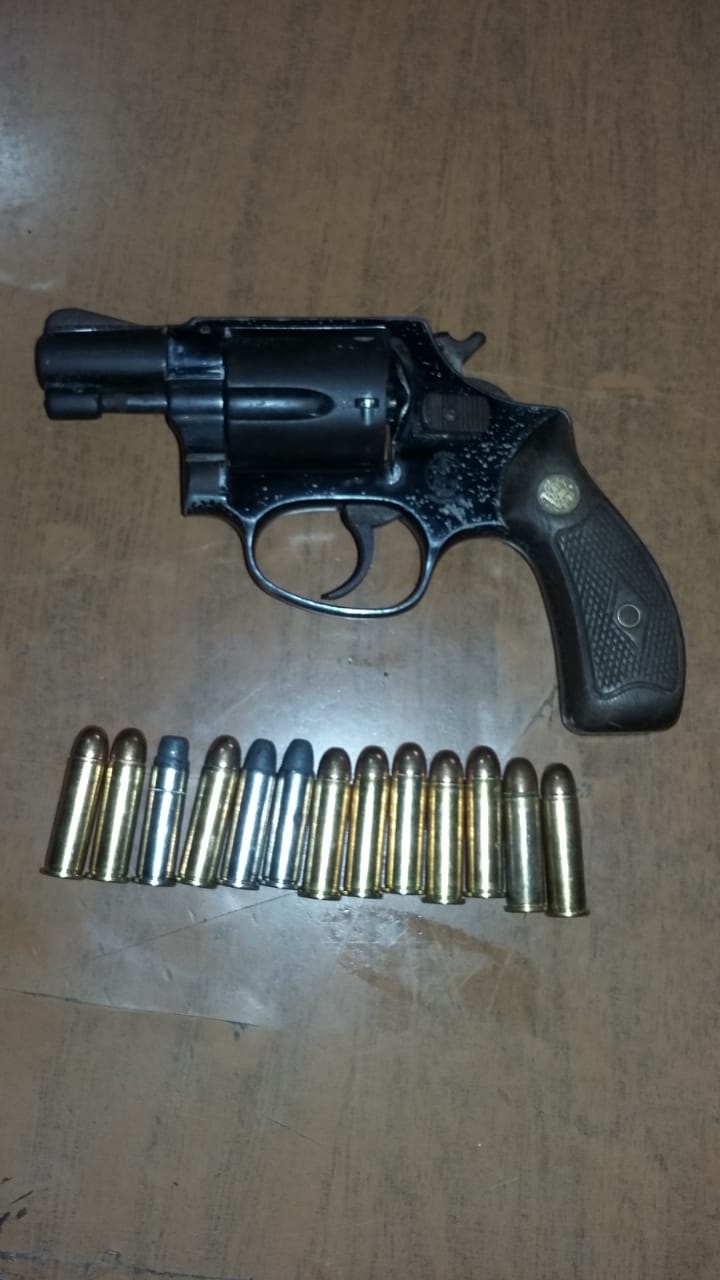 Lugar donde procedieron a realizar una revisión preventiva a quien se identificó como J.P., asegurándole una pistola calibre 38 Special, con numeral 253018, con la leyenda: MADE IN U.S.A., así como 13 cartuchos útiles del mismo calibre.
