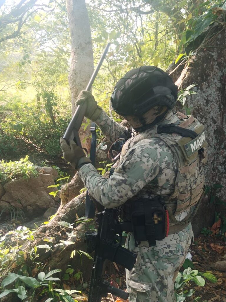 La intervención en la que también participó la Policía Municipal, ocurrió en el camino de terracería que conduce al arroyo denominado La Angostura, ubicado en la localidad Santa Cruz Flores Magón; en la que las y los elementos tuvieron a la vista a un masculino que huyó y dejó en el sitio una escopeta sin marca ni número de serie y dos cartuchos útiles calibre 16.