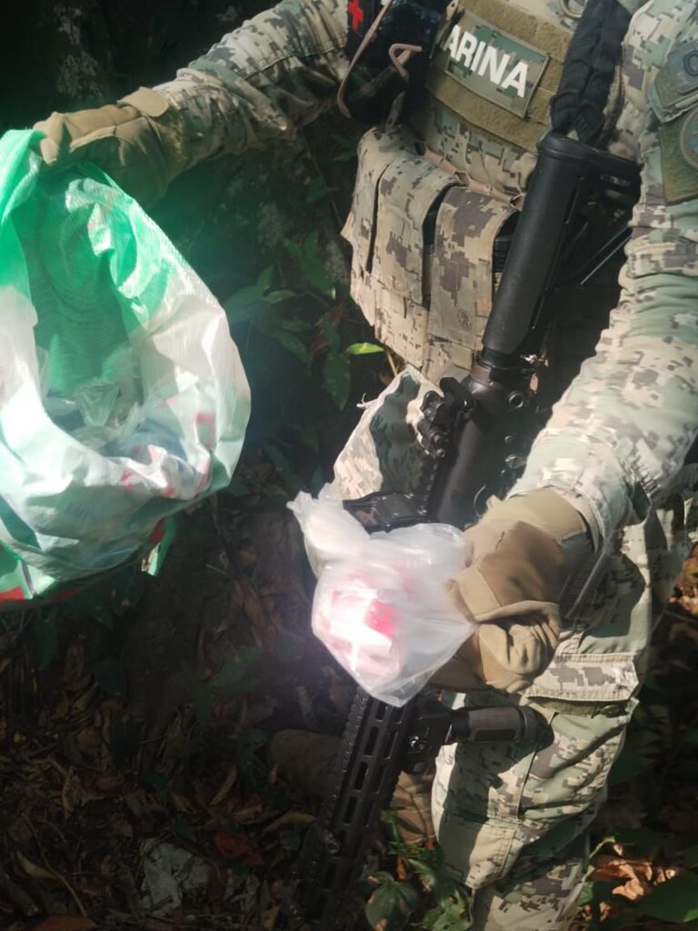 Oaxaca de Juárez, Oax., 6 de enero de 2026.- La Secretaría de Seguridad y Protección Ciudadana (SSPC), a través de la Policía Estatal y en coordinación con la Secretaría de Marina (Semar), aseguró 160 bolsas con presunto cristal y marihuana, así como un arma larga de fuego y dos cartuchos en Santiago Jamiltepec.