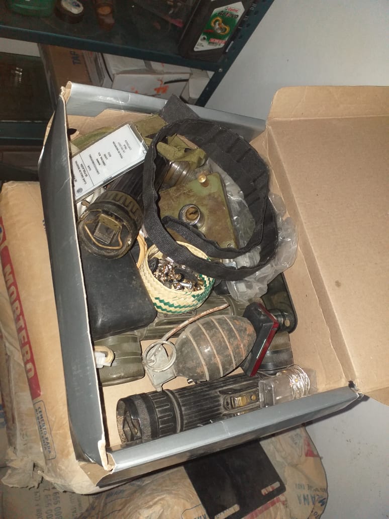 Durante estos cateos se aseguraron armas cortas y largas, cartuchos de diversos calibres, una granada de fragmentación de uso exclusivo de las Fuerzas Armadas, fornituras y ropa tipo militar, así como una chamarra con la leyenda de «policía municipal» de Oaxaca de Juárez, radios portátiles y bolsas con contenido de droga denominada «cristal».