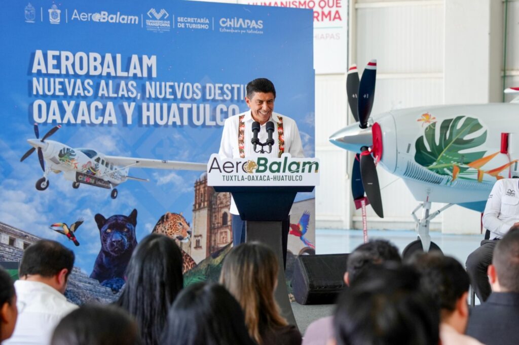 En el aeropuerto internacional Ángel Albino Corzo, de esta entidad sureña, los Gobernadores de Oaxaca, Salomón Jara Cruz y de Chiapas, Eduardo Ramírez Aguilar asistieron a la apertura de estos vuelos de la empresa AeroBalam, que unirán a ambas entidades con el acceso a destinos claves para visitantes nacionales e internacionales.
