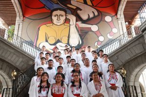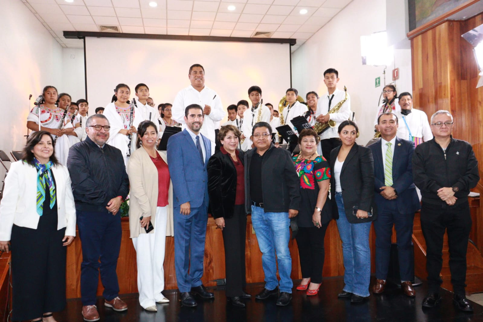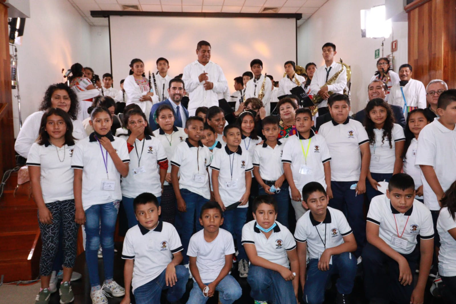 El evento, presidido por los titulares de la SEP, Delfina Gómez Álvarez y de la Secretaría de Agricultura y Desarrollo Rural (Sader), Víctor Villalobos Arámbula, contó con la asistencia del encargado de Despacho del Instituto, José Luis Rangel y con la participación especial de la Banda Musical del Centro de Integración Social (CIS) número 8 de San Bartolomé Zoogocho, Villa Alta, integrada por niñas y niños, que cautivaron al público presente con magistrales interpretaciones.